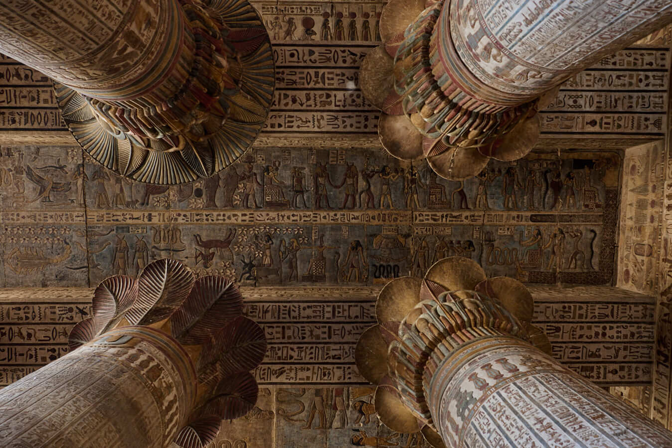 Els temples, cases per als déus i punts de connexió amb el món diví, plens de jeroglífics, com els de Karnak i Luxor. Les tombes eren les llars eternes dels humans, des de mastabes fins a les mes complexes de la Vall dels Reis, ricament decorades.