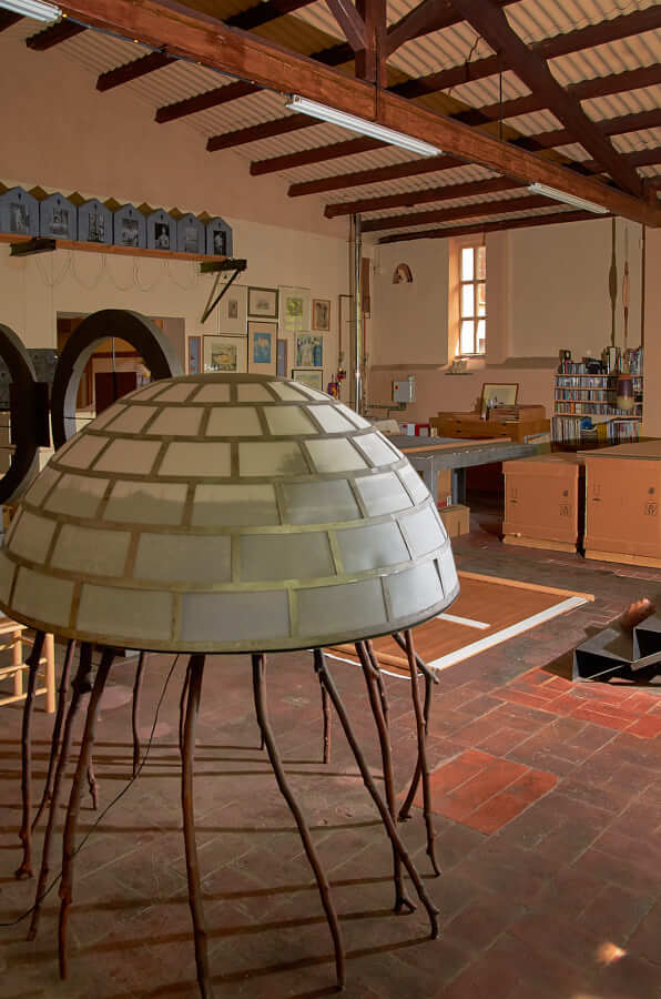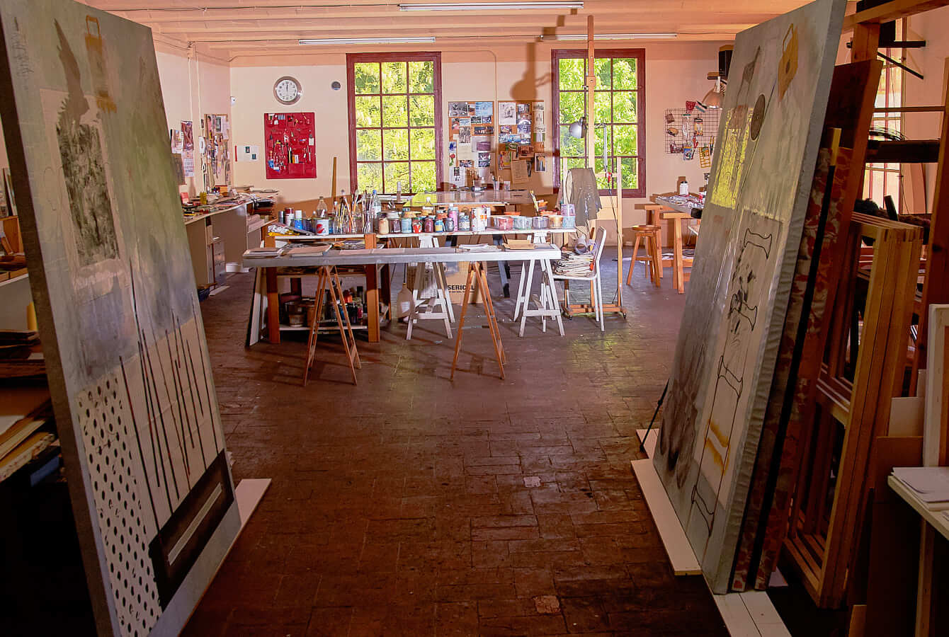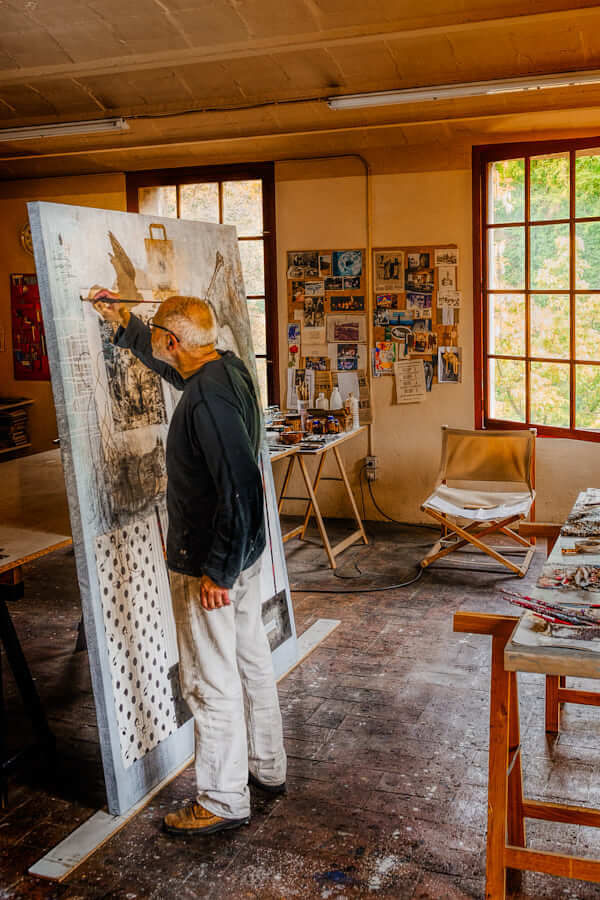 Tanmateix, al voltant de l'any 1995 en Quim Domene va instal·lar el seu taller de creació artística en una de les dependències de Can Sabata. Convé destacar que va ser un dels primers a instal·lar-hi el seu taller. Convé ressaltar que l'espai "La fàbrica del riu" -tal com ell l'anomenava- l'ha ocupat fins al desembre de 2024. D'altra banda, el seu estudi no ha quedat buit i, ben aviat l'ocuparà en Marc Sarsanedas, inventor i escultor olotí, tan bon punt el tingui enllestit.