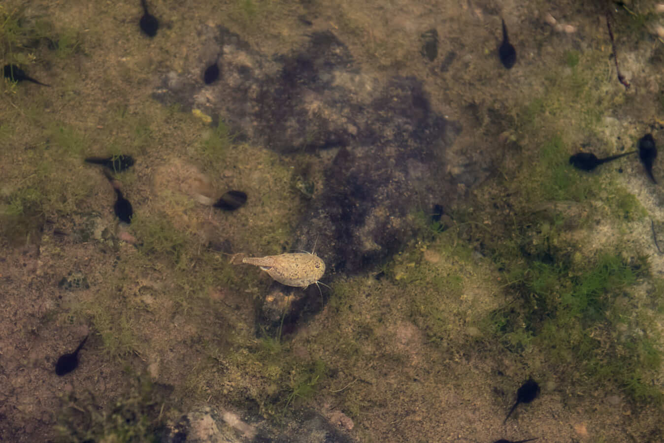 Amb els triops, hi conviuen cap-grossos, culleretes o com li digueu a la larva de la granota, milers.