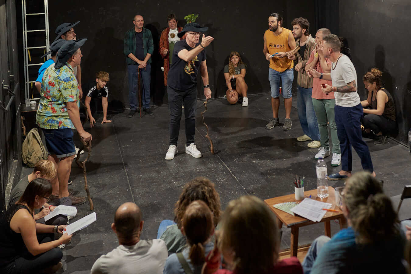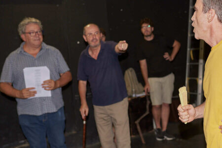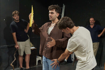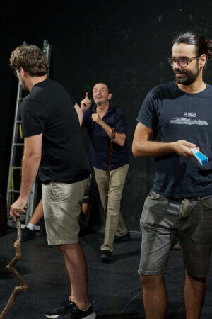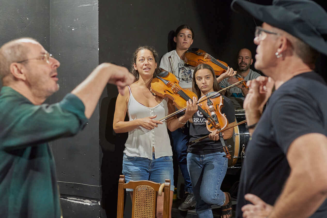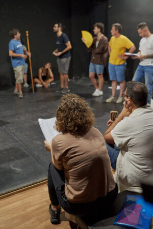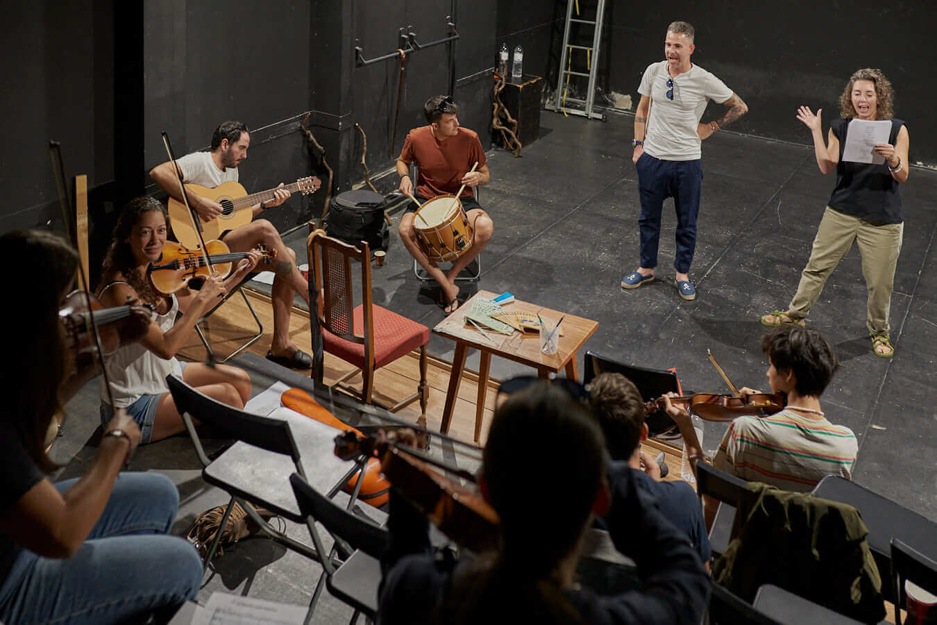 En primer lloc actors i músics assagen la representació