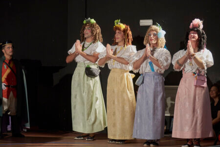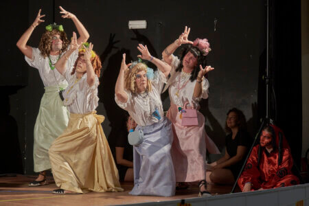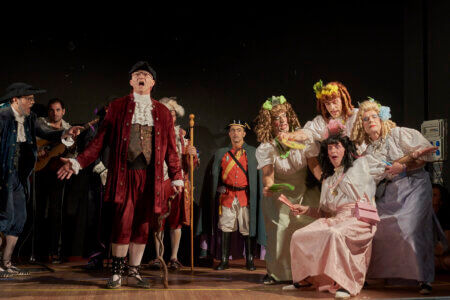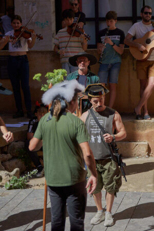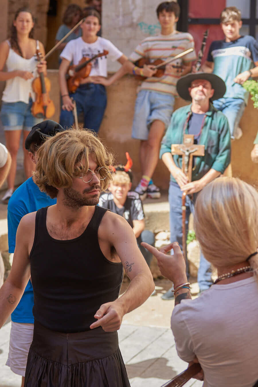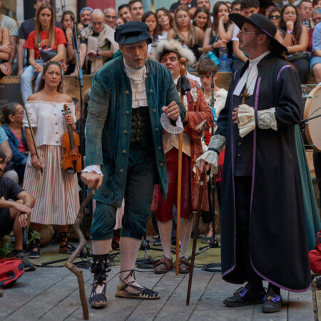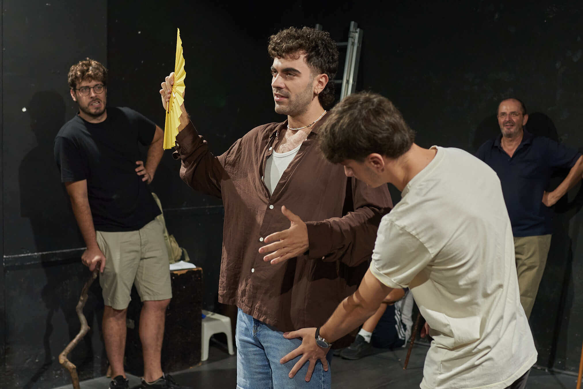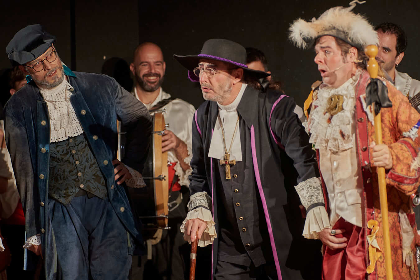 En primer lloc actors i músics assagen la representació