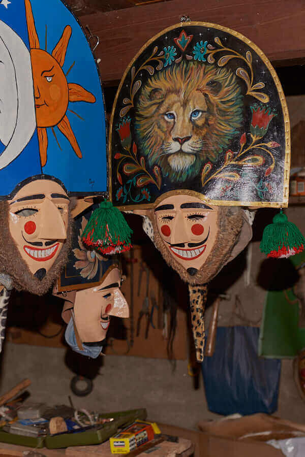 La disfressa està feta totalment a mà. En particular, la jaqueta és curta i està coberta a l'esquena amb un mocador que, en molts casos, és un regal de la xicota. Així mateix, els pantalons són de lli, amb puntes i rivets de cotó. A més, porten camisa i corbata, mitges i lligams elegants de colors cridaners. A la cintura porten dues faixes i per sobre d’elles un cinturó amb sis esquellots que fan un gran soroll quan corren. A la mà duen una samarra: un bastó i símbol d’autoritat amb el qual obren el camí, saluden i castigen.
