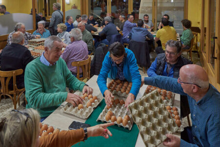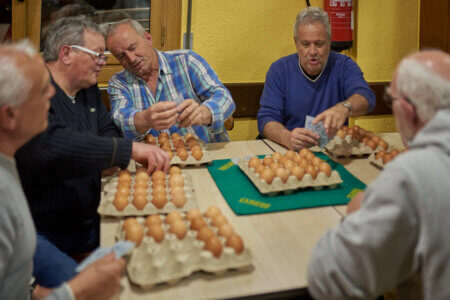 Val a dir que el Joc dels Ous és sobretot una celebració social. Mans que barregen cartes, ous que passen de jugador en jugador i rialles espontànies omplen la sala. A més, l’hostal convida amb brunyols per crear ambient i fer caliu.