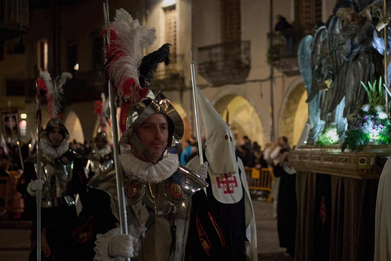 Ara bé, la religió també ha evolucionat. S’ha passat d’una religió basada en la doctrina a una religió centrada en el sentiment. En conseqüència, la missa connecta menys amb l’individu contemporani, en canvi, les processons ofereixen una experiència sensorial més intensa i directa. El so de les trompetes, l’olor de la cera i la força visual de les imatges captiven els participants. En aquest context, la fe conviu amb la identitat cultural i l’estètica. Per això, no és estrany trobar “manaies i caputxins” agnòstics que hi participen per tradició o per respecte familiar. Així, es manté viva una herència cultural compartida.