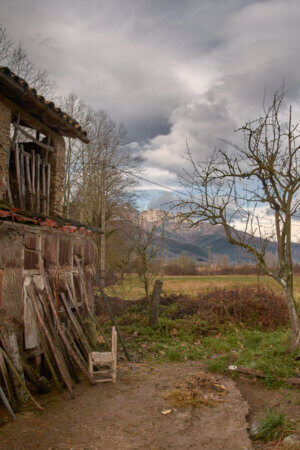 M'explicava que el seu home, que en té noranta i quatre no vol marxar, que tenen una casa nova al poble, però que no hi vol anar. Viuen en un mas, amb una casa i un paller (a la Garrotxa en diuen cabana). "No sé què deu tenir aquesta cabana que tothom s'hi para i li fan fotos, ha sortit a la tele i els de la Seat hi han fet un anunci".